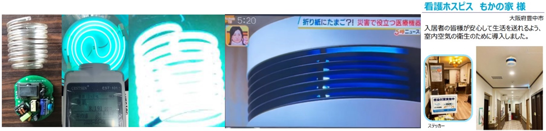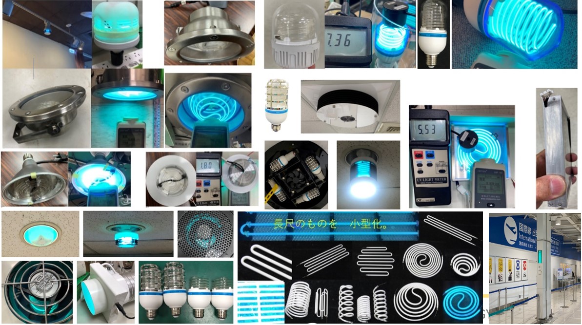 商品化:UVC電球、渦巻モジュール、パーライト、投影ライト、ダウンライト、UVGI、GX70、空調セット、水殺菌ライト(優れている10万回耐点滅特性)など。